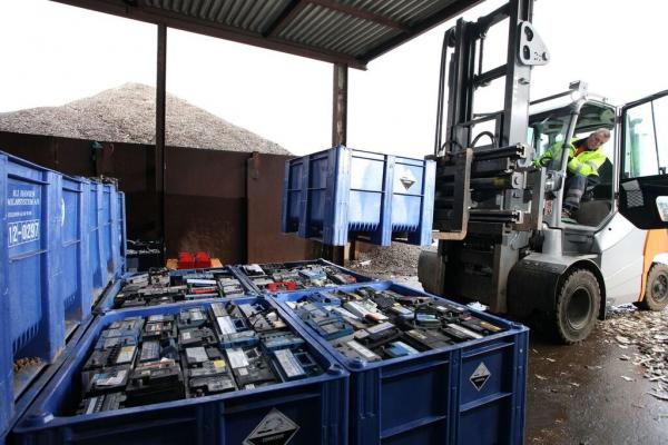 900Kgs of lead acid batteries being emptied with fork lift truckmere...